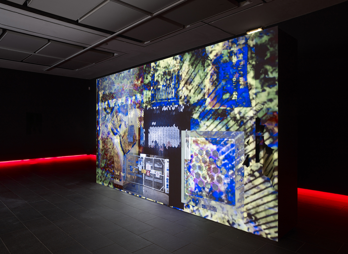 A series of close-ups of four individuals fade into ghostly apparitions as layers of flickering and flashing images and footage taken in and around Manchester city centre flood the screen. From Chinatown to Castlefield, canals to casinos, sex shops to Sacha’s, Cheng’s position as an outsider in the city represents an experience both rooted within the allure of fantasy and a sense of isolation. Underneath the work’s pulsating electronic soundtrack that fills the gallery, the voiceover, distortedly delivered in both Chinese and English, reinforces this loneliness: “I feel like I’m invisible, I wish I could be important.” Permeating ‘Manchester Plan’ is a recurring grid motif, lifted from the distinctive honeycombed ashtrays found in the city’s public bins. Drawing on the Manchester worker bee, the city’s historic symbol, Cheng explores the pulsating ‘hive’ network that animates the city while reinforcing a sense of self-sufficiency and survival shared by the worker bee and the stranger in an unfamiliar urban environment.
