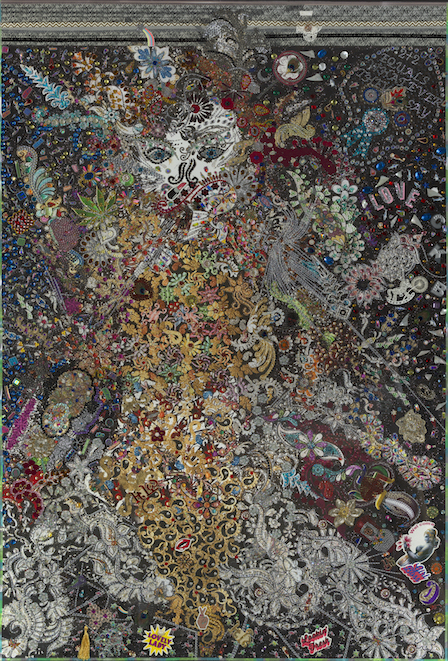 Madhu Manipatruni delved into the remarkable cross-dressing adventures of Hannah Snell in John Timbs’ English Eccentrics and Eccentricities, published in 1866 by Richard Bentley. Based on the true story of a young woman who fell for the charms of a deceitful and scandalous Dutch military man, she disguised herself as a man and voyaged across the oceans, joining the military and enlisted in ‘defending’ the Coromandel coast. Only revealing her true identity to two trusted women along the way, Hannah had to withstand the jealousy and suspicions of her fellow male companions, tolerating their mockery and lashings and treating her own bullet wounds. Manipatruni was deeply fascinated by Snell’s story and her part in the English-French trade wars that took place in South India in the eighteenth century, capturing her image in kantha (straight stitch) work.
