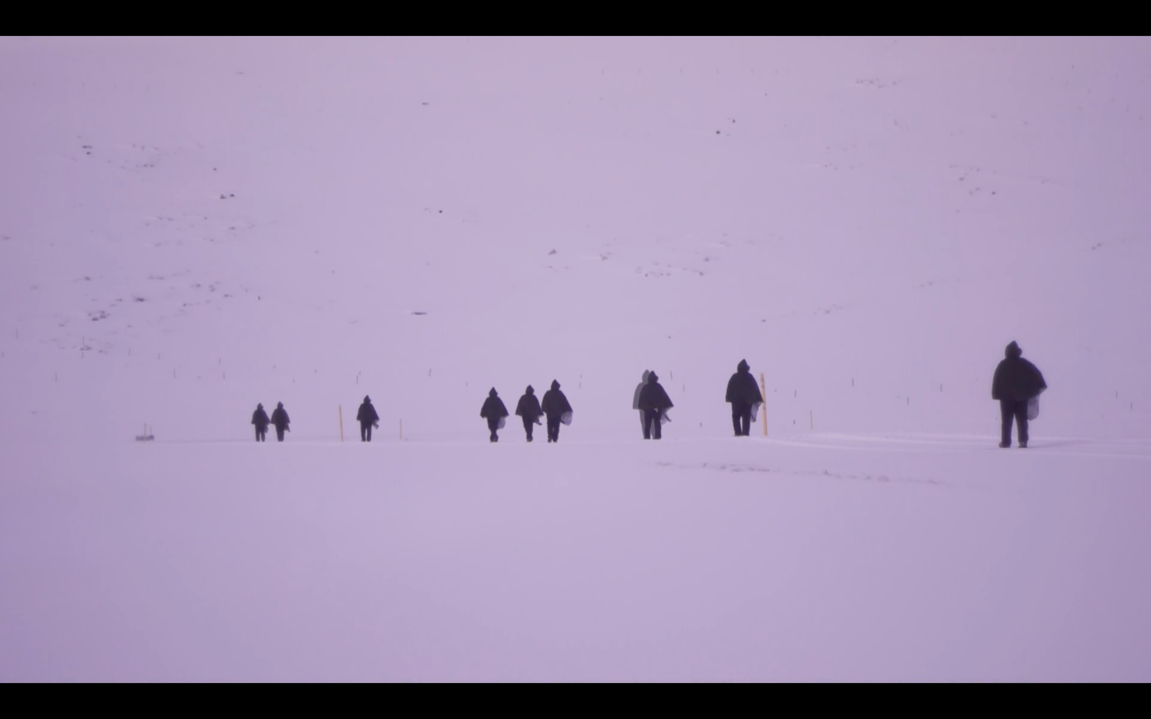 For the performance itself viewers were encouraged to lie on bean bags placed on the theatre floor and gaze upwards to the back wall where the installation was projected, creating a sense of community and shared experience; where like the landscape, the projection becomes overpowering as you can’t physically take all of it in at the same time. It was this aspect to the installation that made it successful, visually creating a sense of serenity and immense space through film. The space itself presented a challenge, in the respect that it wasn’t as stark as a gallery, which has the benefit of a neutral blank space which creates a certain sense of intimacy. Whilst Afloat, in Land induces a sense of the sublime by being surrounded by Iceland’s landscape and an incomprehensible awe to this little charted land; it would be interesting to view the installation within a more enclosed space which would heighten the feelings created within the piece.