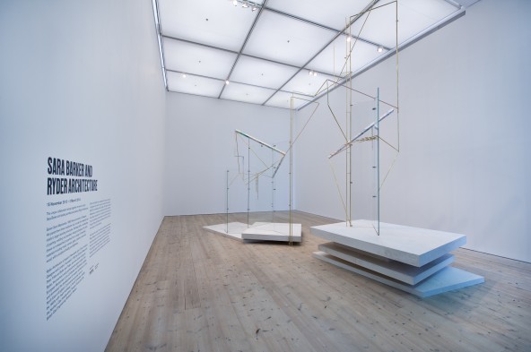 That said, it is impossible to come away from this show without feeling that something is missing. The problem lies in the fact that what is intended as a collaboration ends up in compromise which sees the artist Sara Barker come off worse. Her earlier works such as ‘Conversions’ (2011) breach the boundaries of painting and sculpture with their wonky steel and aluminium lines that seem almost unsure of themselves. In swapping human for architectural scale at BALTIC, Barker loses her characteristic spontaneity and organic approach to materials, resulting in a structure that, though elegant, also seems clinical and over-thought.