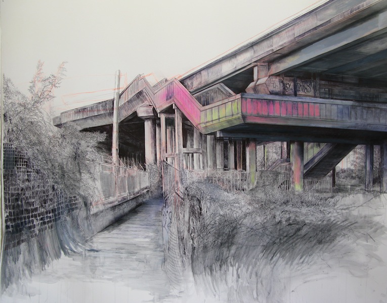 Image: Laura Oldfield Ford, M6 Junction 9, Bescot, 2011. Chalk, acrylic & ink on watercolour paper.